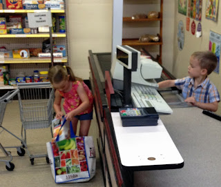 After an amazingly painless haul over to Gainesville, we arrived at INK just after the doors opened! The kids always race for this grocery store area, one of their favorites. Lincoln was playing the cashier, and he loves that the scanner actually makes the highly-official "beep" sound when you scan items with a barcode :-)